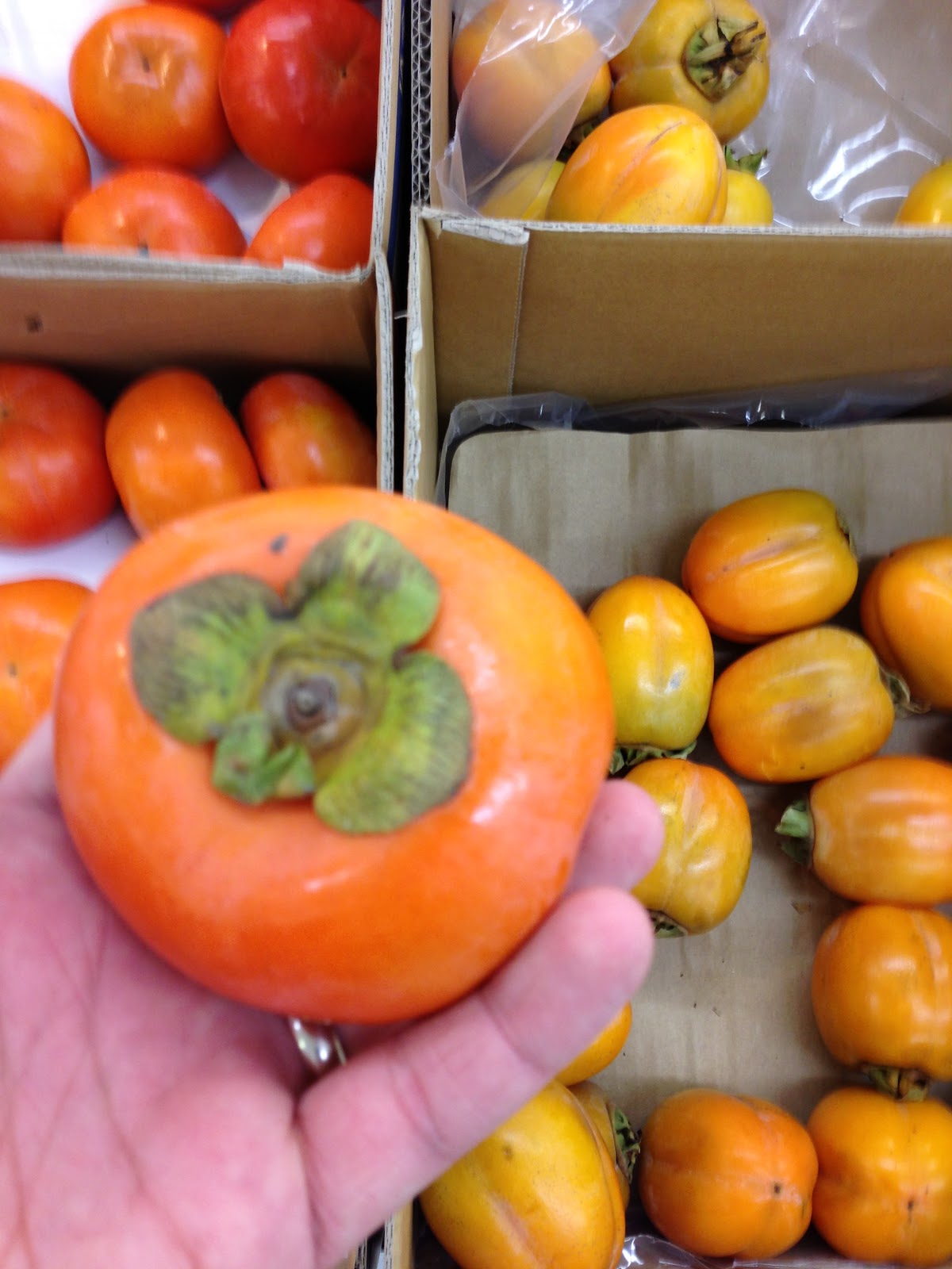 | David found some persimmons on sale for 100yen each, when shopping that week. 100yen is a little more than a dollar. |